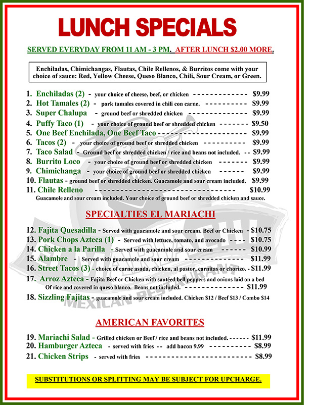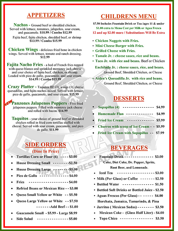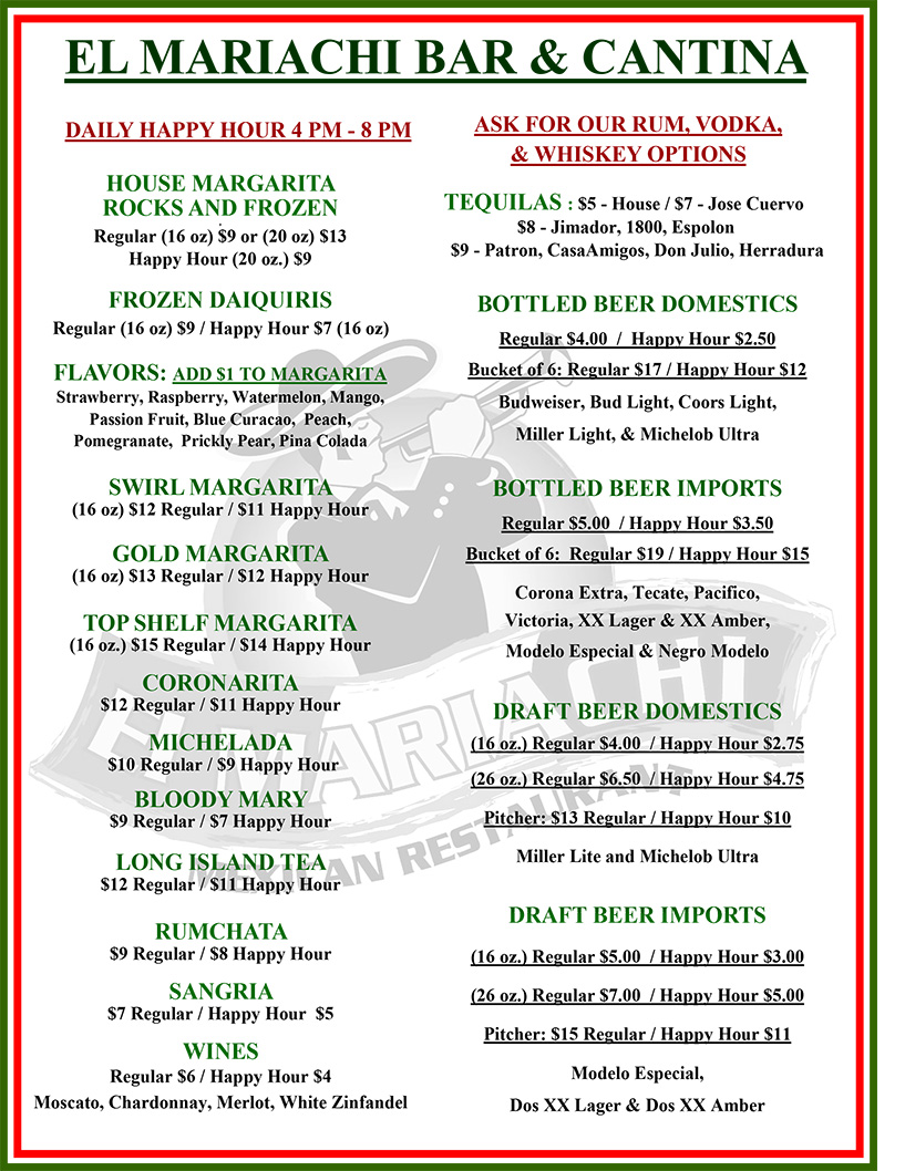 If you have any questions about our menu items, contact El Mariachi Mexican Restaurant today. We'll be happy to make recommendations, take your catering order or answer questions.