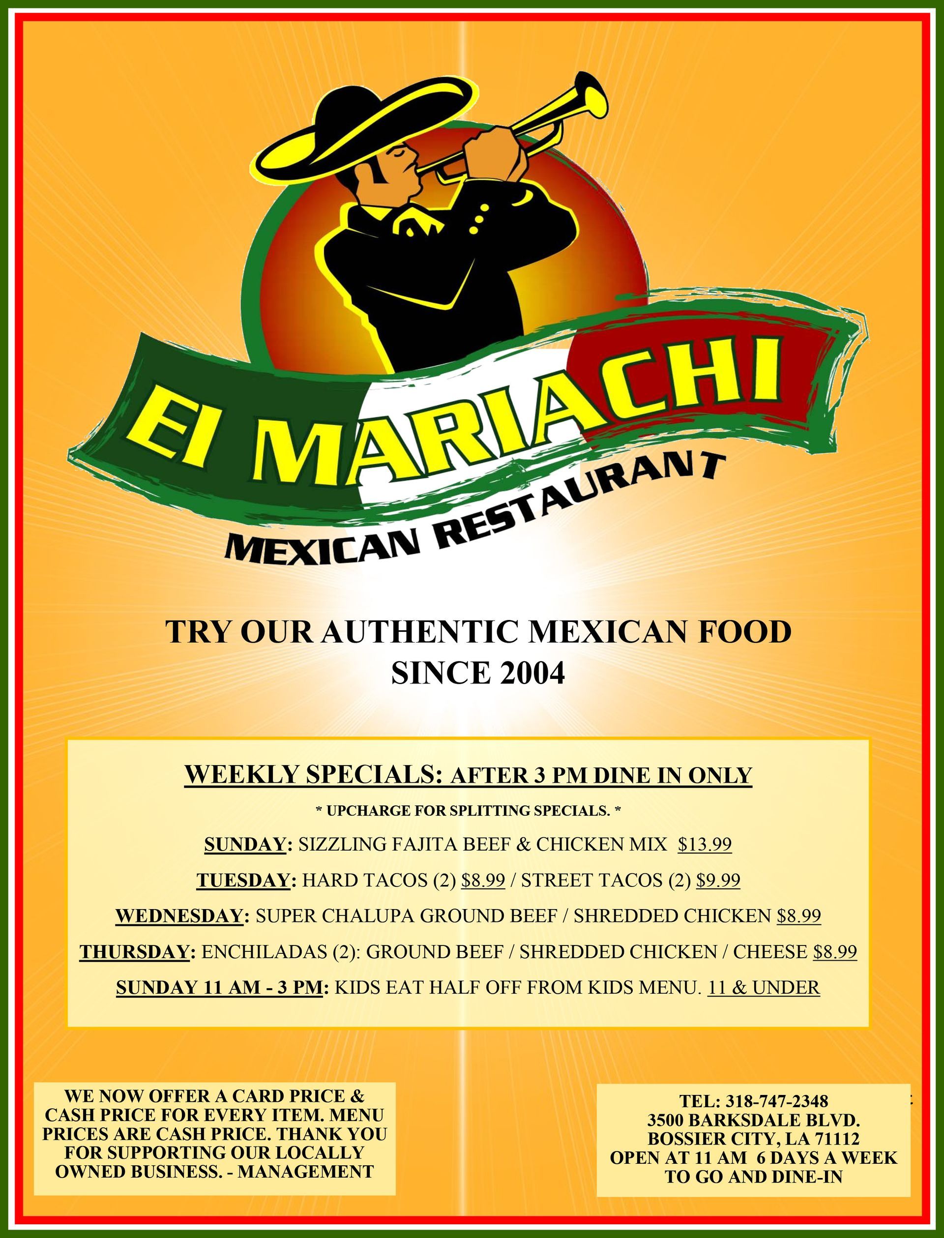 If you have any questions about our menu items, contact El Mariachi Mexican Restaurant today. We'll be happy to make recommendations, take your catering order or answer questions.